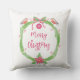 Watercolor Lovely Wreath + Script Merry Christmas Cushion