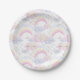 Watercolor Magical Rainbows and Clouds Glitter Paper Plate