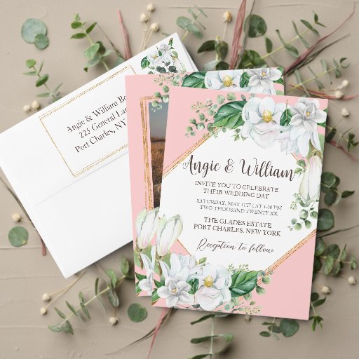 Our Watercolor Magnolia Blush Wedding Fan is a wonderful way to celebrate and share your joyous event. This beautiful gold frame has a beautiful array of gorgeous white magnolias and greenery on a pretty blush background. It's perfect for spring or summer. Fantastic for any indoor or outdoor summer event.