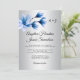 Watercolor Magnolia Navy Blue Silver Grey Wedding Invitation