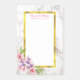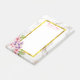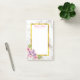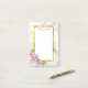 Sticky notes for a wedding or other event with a modern design - a faux marble texture in white makes up the background. Layered over top is a frame with a faux gold foil border. Large pink and purple watercolor magnolia flowers with green leafy accents decorate the design.