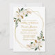 Watercolor Magnolias Greenery Gold Photo Wedding Invitation