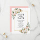 Watercolor Magnolias Roses Gold Frame Pink Save The Date
