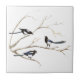 Watercolor Magpie Family Birds in Tree Tile