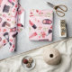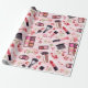 Watercolor Makeup Beauty Pattern with Pink Flowers Wrapping Paper