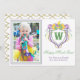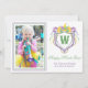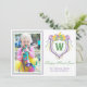 Watercolor Mardi Gras Monogram Crest Photo Holiday Card