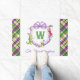Watercolor Mardi Gras Plaid Animals Monogram Crest Doormat
