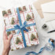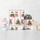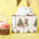 Watercolor cute mouse with a holiday gift, red border, and snowflakes overlay.