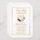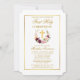 Modern Elegant Watercolor Floral and Greenery First Holy Communion Invitation includes pink blush, peach, hot pink, burgundy roses, delicate purple flowers and botanical greenery. Gold script. Gold Cross.