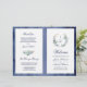 Modern watercolor artwork featuring beautiful floral wreath of hydrangea, eucalyptus, anemone, buds, twigs, leaves with bride’s and groom’s monograms. This wreath with monograms can be your wedding logo. Elegant font combo. Original colour theme: teal, light blue, deep blue, light green, beige, ecru, white. Deep blue watercolor wash background on the front, cute flower bouquets and a thin frame on the inside. Perfect for elegant modern wedding, floral wedding, classic wedding.