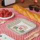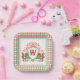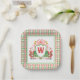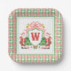 Watercolor Monogram Initial Plaid Santa Crest Paper Plate