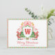 Watercolor Monogram Initial Santa Crest Holiday Card