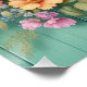 Cute and whimsical floral design pink blue purple orange colour flowers on a teal wood fence background watercolor painting