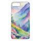watercolor mountains and a vibrant rainbow create dreamy landscape on this phone case