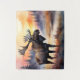 This serene watercolor painting captures a majestic moose standing gracefully at sunrise, bathed in warm golden hues. The soft brushstrokes and misty atmosphere create a peaceful, nature-inspired scene perfect for wildlife and landscape art lovers.