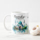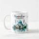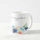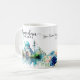 A watercolor floral ramadan mug with watercolor mosque and flowers, and script calligraphy. The cup is easy to customize with your wording, font, font color, paper shape options, and choice of paper types. The subtle ramadan scene and watercolor floral look stunning on the front, while the aqua blue watercolor flowers contrasting the backside with a personalized message makes this ramadan mubarak mug truly unique.