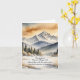 Watercolor mountain scene with snow-capped peaks and river for a sympathy thank you from the family.