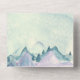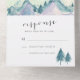 Bat Mitzvah invitation featuring watercolor mountains and trees in blue and purple. Includes a handy tear off rsvp card.