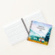A beautiful watercolor mountain scene forms the backdrop for a teal car and cute vintage teardrop camper on our eye-catching notebook for keeping track of your campground stays, new camping friend addresses, recipes and more. Text on front of the notebook is customisable and the current words say, "Stephanie's Camping Notes 2018."