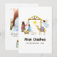 Nativity Christmas greeting card featuring baby Jesus, Mary, a manger, wise men, an angel, Joseph and the Star of Bethlehem.