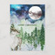This Xmas, anyone would love to receive this beautiful, unique watercolor Merry Christmas postcard featuring Santa and his reindeer going across the night sky and a deer in a forest with a lake and snow out in nature.