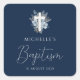 watercolor navy blue floral cross baptism square sticker