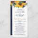 Watercolor Navy Blue Sunflower Rustic Wedding Programme