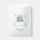 Watercolor New Chapter Begins baby boy shower favor bag. This boy baby shower favor bag is designed to capture the magic of new beginnings. Ideal for literary enthusiasts and book-themed baby showers, this beautifull design showcases a delightful stack of books bound with rope, topped with exquisite floral arrangements and blue fluttering butterflies—symbols of transformation and joy. The mother’s name is in elegant blue script typography, bringing a touch of sophistication to the design. The soft blue watercolor background enhances the dreamy aesthetic.
