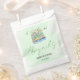 Watercolor New Chapter Begins baby gender neutral shower favor bag. This baby shower favor bag is designed to capture the magic of new beginnings. Ideal for literary enthusiasts and book-themed baby showers, this beautifull design showcases a delightful stack of books bound with rope, topped with floral arrangements and green fluttering butterflies—symbols of transformation and joy. The mother’s name is in elegant green script typography, bringing a touch of sophistication to the design. The soft green watercolor background enhances the dreamy aesthetic.