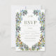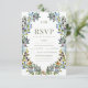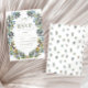 Contemporary and romantic, these RSVP response cards for a spring/summer bohemian rustic wedding feature a beautiful and vibrant watercolor olive branches wreath and pattern, creating a botanical and nature-inspired design that adds a touch of elegance to your wedding stationery ensemble.