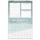 Unique 12 page monthly calendar features a calendar grid beneath three customisable sections to help organise your month, including a lined to-do list with checkboxes, a section for "big goals" and a notekeeping section. Each page features a sheer watercolor gradient background in soothing shades of jade green, with the month in white handwritten lettering. Personalise the front cover with the year and your custom text to make this beautiful 2019 calendar your own.
