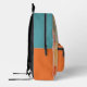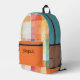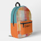 Fun orange and teal watercolor plaid backpack featuring a customisable name, perfect to make back to school or starting college memorable.