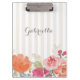 Watercolor Orange Peonies Pinstripes Custom Clipboard