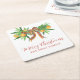Watercolor Oranges Plaid Bow Christmas Square Paper Coaster