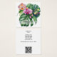 A business card with a white background featuring orchid flowers and monstera leaves.
