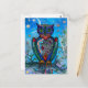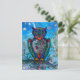Watercolor Owl fantasy illustration. Fairytale Postcard