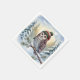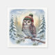 A charming owl wearing a winter hat with earflaps, perched on a pristine snow-covered branch, surrounded by a tranquil snowy forest that radiates peace and beauty in watercolor