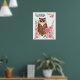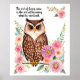 Watercolor Owl On Limb With Pretty Flowers Poster
