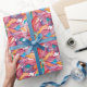 This Christmas wrapping paper features painted watercolor poinsettia pattern in colourful shades. A fun and vibrant choice for unique Christmas gifts and your holiday gift giving.