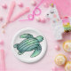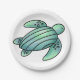 watercolor painted sea turtle cartoon blue green paper plate