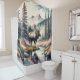 Watercolor Painting of Moose in Forest Shower Curtain