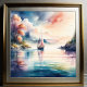 Watercolor Painting of Rural Landscape Sailboat on Lake The aspect ratio is 1:1. It was designed to be printed as 20"x20" 16"x16" 12"x12"