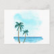 Watercolor palm trees on the beach postcard