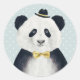 This design features asmart dressed panda bear in a hat and bow tie on a soft polka dot background.