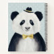 This design features asmart dressed panda bear in a hat and bow tie on a soft polka dot background.