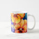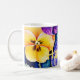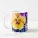 This mug is decorated wit bright, beautiful pansies in shades of purple and yellow on this personalised mug.