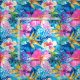 A seamless pattern featuring Hawaiian flowers like hibiscus, birds of paradise, and orchids in a vibrant watercolor style. The design captures the lush and exotic beauty of tropical flora with rich, vivid colours and artistic fluidity