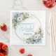 Watercolor pastel blue flowers gold frame napkins