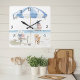 Add a touch of patriotic flair to your space with this beautifully illustrated square wall clock. Featuring a serene beach scene with a blue and white umbrella and an American flag-striped red, white and blue lounge chair. This clock blends coastal relaxation with timeless American pride. The soft watercolor design and minimalist numerals make it perfect for summer décor, beach houses, or anyone who loves Americana style.