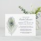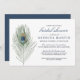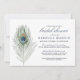 Beautiful bridal shower invitations feature a single peacock feather in soft watercolors, with your event details in a mix of block and script lettering. An elegant choice for modern brides, this design is formal and refined without being stuffy and incorporates classic typography and an on-trend watercolor element. Card reverses to coordinating solid blue.